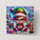 Brinquedos de fazer de elfo adoráveis e grumantes num dia de Natal nevado. Botão engraçado para o elfo de Natal da sua família.