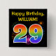 Bóton Quadrado 5.08cm Fireworks divertido + Rainbow Pattern "29" Anivers