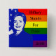 Este botão caracteriza uma imagem de Hillary Clinton na frente de uma bandeira americana e de uma bandeira do orgulho gay. O texto lê, de "suportes Hillary para o orgulho 2016".