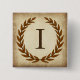 Bóton Quadrado 5.08cm Laurel Wreath Aged Papyrus Monograma Inicial I
