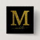 Letra M monograma com simulação de brilho numa cor sólida. Personalize com seu nome ou mensagem na fonte de script ouro amarelo.