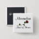 Bóton Quadrado 5.08cm "Madrinha de casamento" - Rosa estempilado longo v