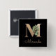 Bóton Quadrado 5.08cm Monograma Botânico Elegante Botão Letra M Dourada