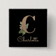 Bóton Quadrado 5.08cm Monograma Botânico Elegante - Letra Dourada C Botã