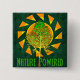 Um símbolo solar baseado em uma roda giratória segura uma árvore no centro com as palavras "Natureza Acionada". Em amarelo, laranja e verde para representar o sol e a terra e todas as coisas em crescimento.