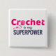 Bóton Quadrado 5.08cm O Crochet é minha superpotência no rosa