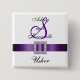 Os pinos da festa de casamento de Usher com uma fita e um diamante roxos impressos do cetim jewel a foto. Personalize com seus nomes da inicial dos noivos e do monograma. Igualmente mude as cores e as etiquetas do fundo para todos seus membros de partido nupciais. Queira uma fita diferente da cor, contacte por favor luxuryweddinginvitations@gmail.com.