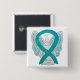 A causa de conscientização do câncer de ovário usa uma fita verde teal. O pino de conscientização apresenta a pintura de um anjo de fita de reconhecimento de marca em um pingente de botão personalizado. O pino diz "Consciência do Câncer de ovário", mas pode ser atualizado com uma mensagem de reconhecimento pessoal. Os pinos ou botões de lapela de fita de anjo de consciência teal podem ser personalizados com mensagens personalizadas para fazer botões de causa de excelente para pendentes de arrecadação de fundos, presentes de pinos de conscientização ou outros eventos especiais de pendant ou pinos de lapela de conscientização para as ocasiões da causa.