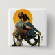 Artista: Por do sol do relógio do menino & da menina de Norman Rockwell | do banco, filhote de cachorro desesperado