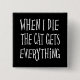 O último botão para mães de gatos e amantes de gatos! Um botão quadrado com uma tipografia divertida QUANDO MORRO O GATO PEGA TUDO em letras brancas negrito. A cor de fundo da tipografia é personalizável. Basta clicar no botão "Personalizar!" e mudar a cor preta para qualquer cor que você quiser no Gráfico "Cor de fundo do Impressão".