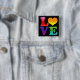 Um simples, mas ousado, design de texto de amor acentuado com cores cardíacas e inclinadas do arco-íris. Mostre algum amor a qualquer momento e também é uma design divertida para Orgulho gay mês de junho! Mostrado aqui num botão quadrado personalizável com um fundo preto. Adicione sua própria mensagem personalizada e escolha sua cor de fundo favorita, se desejar.