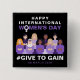 Botão Roxo Dar para Ganhar Dia Internacional da Mulher 2026.