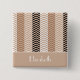 Um sofisticado botão de padrão listrado castanho variegado com faixas de castanho, bronzeado e bege. Personalize este elegante design zigzag, adicionando seu nome para trazer um visual elegante e refinado ao seu estilo pessoal.