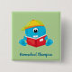 Trazendo diversão e alegre, mostre ao mundo que você é um campeão da escola de casa. Apresentando um monstro azul com um olho e um boné amarelo, ele está lendo um livro vermelho. Sob a design está escrito em azul "Homeschool Champion". Faça seu pedido hoje mesmo! Trabalho de arte criado por: Prettygrafik design (https://www.etsy.com/shop/Prettygrafikdesign)