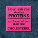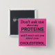 Este botão de diversão minimalista, com a frase "Não me perguntes sobre as minhas proteínas e não te perguntarei sobre o teu colesterol" em letras negras num fundo cor-de-rosa, é o presente perfeito para cada vegano. Para pedidos personalizados, queira contactar-me em zolicestore@hotmail.com (permitir 1-2 dias úteis)