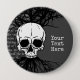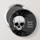 Design de alto contraste preto e branco de um crânio com uma árvore crescendo no fundo preto.