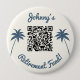 Aumente sua celebração de aposentadoria com este botão de código QR personalizado! Apresentando um design com duas palmeiras azuis e o texto 'Caixa de aposentadoria de Johnny!', este botão permite que os convidados digitalizem o código QR e contribuam para o fundo especial da aposentadoria. Faça uma contribuição significativa para honrar a viagem de aposentadoria de Johnny!