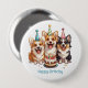 Bóton Redondo 10.16cm Parabéns, Cães Corgi.