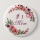 Linda aquarela pintada com arranjos florais em cor rosa, amarela e roxa decoram este pino que lê #1 Mãe.