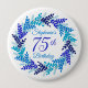 Elegante Blue Wreath 75th Birthday Button Pin Este é um único e elegante pino de aniversário do botão Blue Wreath Art especialmente projetado para seus amigos que estão virando o maravilhoso marco de 75! Personalize este botão de aniversário com seu nome. Um botão de aniversário de coroa azul personalizado perfeito para o convidado de honra vestir na festa de aniversário. Pode ser usado como presente para seu convidado de honra e/ou para seus convidados vestirem na festa! Planeje sua festa com mais festas de aniversário da nossa loja! Seus amigos ou família vão adorar uma festa de aniversário Elegante Blue Wreath temida!