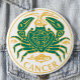 Cancer - Sinal de estrela do Zodiac num saco. Design verde, amarelo e branco. Vista como um broche ou acessório de moda.