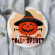 Chamada de Halloween de design espiritual, esta design é perfeita para qualquer um a qualquer momento e não apenas para o Halloween, com este atraente trabalho de arte com duas abóboras assustadoras, com um machado de punhal e um fantasma.