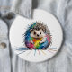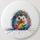 Ein freundlicher Igel in bunten Farben, eine kindliche Zeichnung eines Igels, mit Tusche und Kreide, gekleckst und geschmierte ist die Farben als Stil und Effekt des lustigen Bildes.