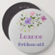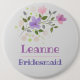 Apresentação da Bridesmaid - Crachá Button com o nome e uma ilustração floral. Crachá de identificação de casamento.