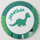 Bóton Redondo 15.24cm Quadro redondo em verde/azul com dinossauro fofo