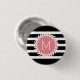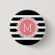 Bóton Redondo 2.54cm Bandas brancas e pretas monogramas e coroa branca