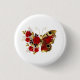Bóton Redondo 2.54cm Borboleta de flor vermelha com rosas vermelhas