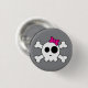 Estes crânio e crossbones adoráveis têm um arco cor-de-rosa brilhante. Botão bonito/crachá para meninas do emo, do punk ou do gótico de todas as idades.