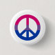 Botão redondo clássico com design de símbolo de paz em cores de bissexualidade; bandeira do orgulho de faixas cor-de-rosa, roxa e azul