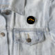 botão preto com duas libélulas cor de laranja e amarela.