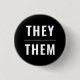 Eles - O Gênero não binário - Pronuncia um botão de pin simples minimalista preto e branco moderno. Texto preto personalizável, fundo branco. Orgulho gay Lgbtq