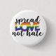 Mostre seu apoio ao LGBTQ Pride com esta tendência de espalhamento LOVE não odeia botão com letra preta e amor colorido arco-íris.