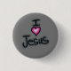 Botão Eu Amo Jesus Eu Amo Jesus. Texto preto com gráfico de coração rosa brilhante no lugar da palavra “Amo”. Lindo botãozinho para quem ama Jesus. Personalize a cor do fundo. Aproveite!