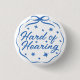 Let people know about your medical needs with this cute hard of hearing badge. This button features the slogan 'Hard of Hearing' in a blue script font, surrounded by hand-drawn stars and a bow, on a white backdrop. Personalize this product with a variety of fonts, colors, and graphics, in Zazzle’s editor. Professionally printed by Zazzle on scratch-resistant plastic. For help & matching products, contact Jessica Amber via Zazzle messenger. Design © Jessica Amber, 2026.