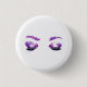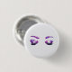 Botão com uma bela ilustração pintada com aquarela. Bonito olhos roxos e sobrancelhas, olhos fechados mostrando longas e elegantes pinceladas.