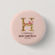Bóton Redondo 2.54cm Letra Personalizada H em Dourado com Botão de Rosa