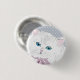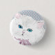 cute white a blue eyes cat with and pink bow. Pink dots on background