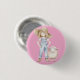 Rosa Button mit Mädchen in Jeanslatzhose und Hut und einem kleinen Lamm.