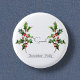 Flor do mês de nascimento Dezembro Botão Holly com ilustração de uma flor sagrada. Abaixo da flor, o nome é escrito em uma letra elegante. Abaixo do nome, ele diz " Dezembro - Holly" indicando que o mês de nascimento do dono é dezembro e que sua flor de nascimento é o gladiolo. É um botão personalizado, personalizado como um presente pensativo para alguém nascer em dezembro.
