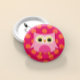 Esta coruja fofa está toda vestida de rosa e bolinhas neste botão doce.