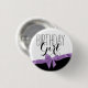 Botão de design impresso com fita de arco roxa e moda, "Birthday Girl".