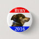 Este é o botão da campanha para o rubi. É um cão, um cão muito bonito. Esta é sua página de Facebook: https://www.facebook.com/rubythechocolateratterrier que está funcionando para o presidente. Sua plataforma: Se todos apenas pegarou seu próprio tombadilho, o mundo seria um lugar melhor. Seu slogan: Voto para o rubi. É uma boa menina.