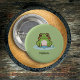 Um botão verde com uma ilustração de um sapo bonito em seu lago e texto personalizável abaixo! Apenas adicione suas roupas ou acessórios para um toque engraçado!