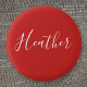 Bóton Redondo 2.54cm Seu Script Branco Personalizado em Vermelho