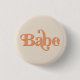 Este alfinete de lapela 'babe' apresenta uma fonte de bolha temática retro dos anos 70 com coloração laranja e bege. Combine facilmente com o alfinete 'noiva' correspondente para um evento de despedida de solteira coeso. As cores são editáveis! Clique em 'editar design' para criar suas próprias cores.