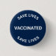Vacinado, salve vidas marinho escuro azul e botão de pino branco texto personalizável preto e branco, disponível em muitas cores